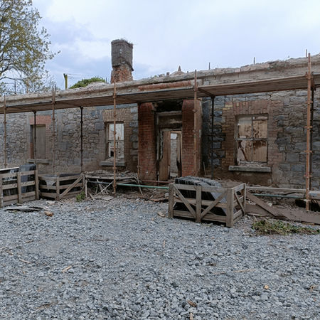 School house with the lime plaster removed from internal and external walls. Then it was blast cleaned using water and grit to reduce dust. An important starting step in getting it back to being a home.
